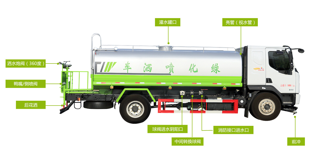 綠化噴灑車又稱為灑水車、多功能灑水車、園林綠化灑水車,適用于各種路面沖洗,樹木、綠化帶、草坪綠化,道路、廠礦企業(yè)施工建設(shè),高空建筑沖洗。灑水車也可以作為運(yùn)水車使用,最常見的車型有環(huán)衛(wèi)灑水車、多功能灑水車、綠化灑水車幾大類。