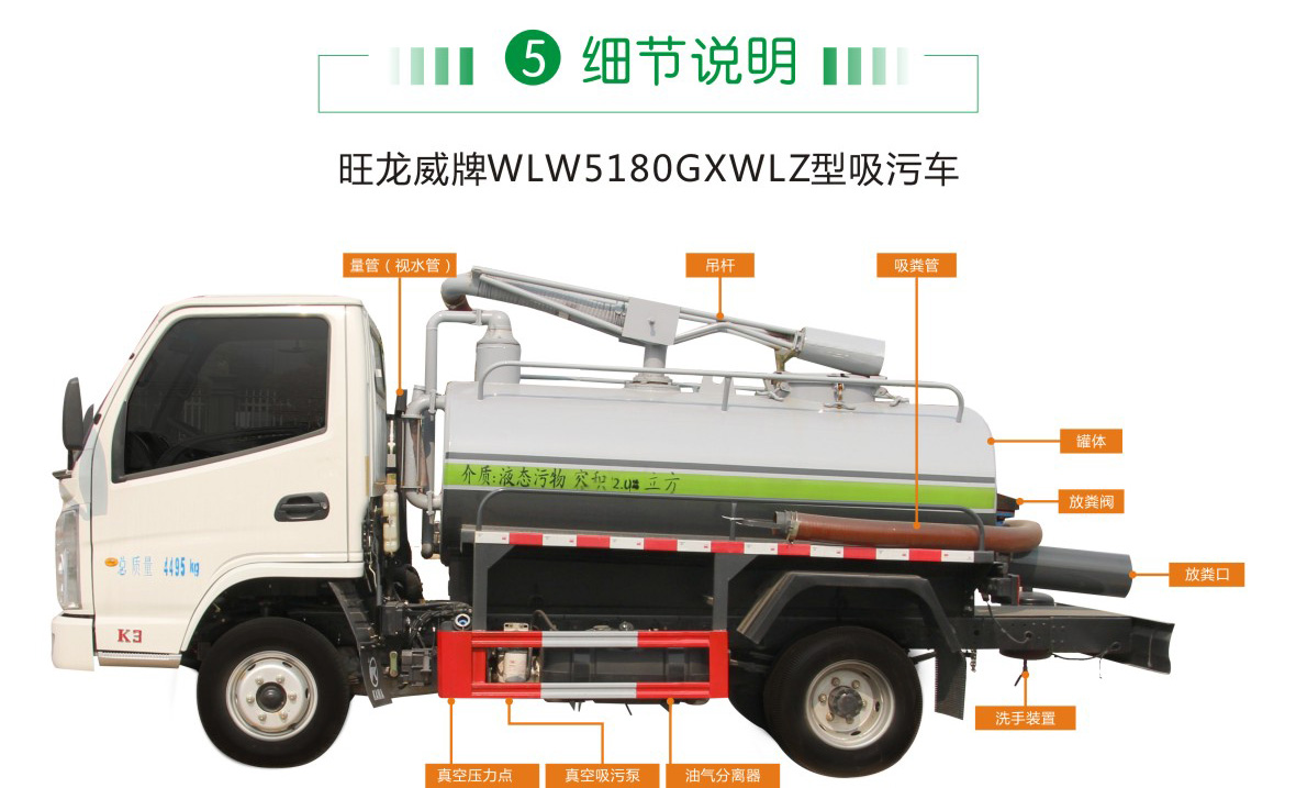 ⑤地域:旺龍威牌WLW5040GXEK型吸糞車全國各地送車上門。