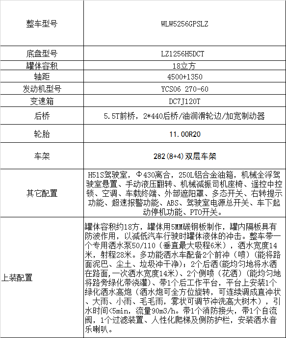 旺龍威牌WLW5256GPSLZ型綠化噴灑車