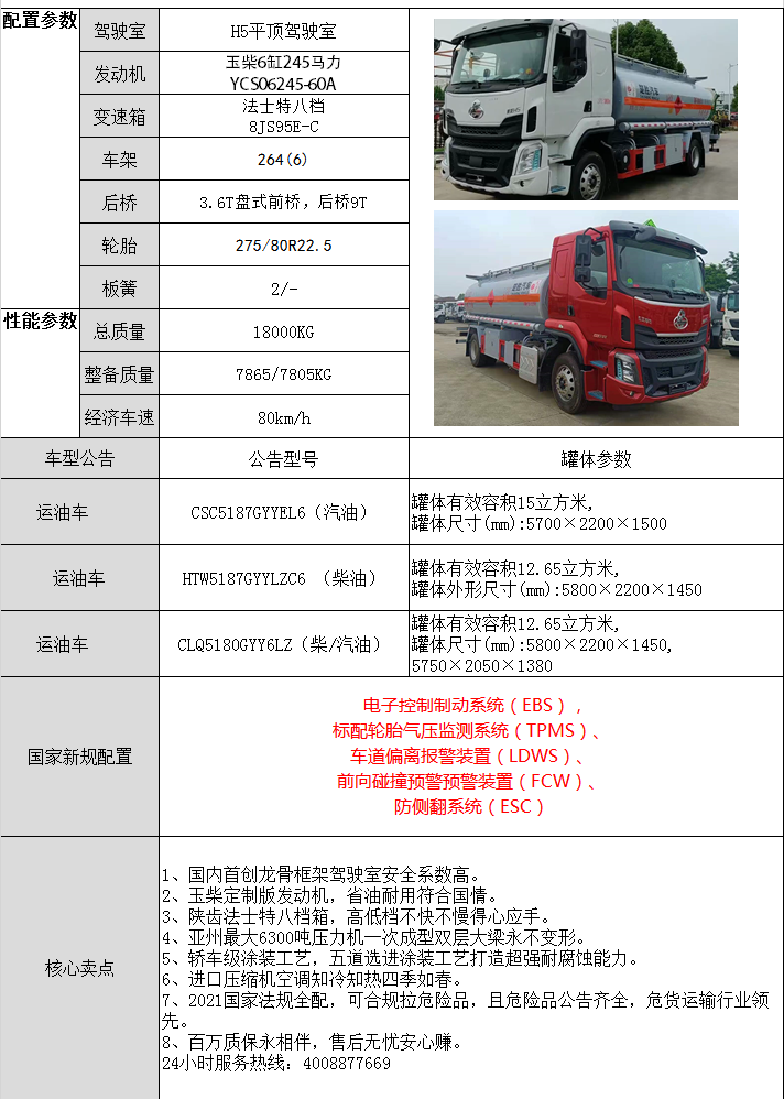 運送油類物料的車輛,罐體一般采用金屬板材制作,也可以用玻璃鋼,塑料等材料制作。要求有足夠的強度,罐體內部設有防沖板,罐體附件設有入孔,出液閥等,有的罐體還需要保溫,配置流量計等。
