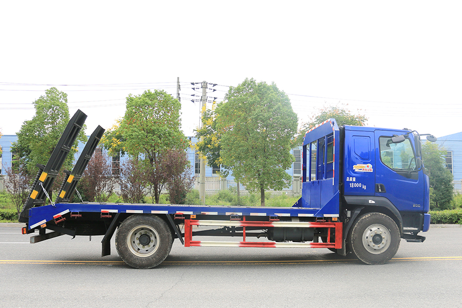 平板運輸車又名為工程機械運輸車、平板車、低平板運輸車,主要用于運輸一些像挖掘機,裝載機,收割機一樣的不可拆卸物體。平板運輸車是生活中常見的大型載重貨車,這種車一般被廣泛用于工廠,工地等大型生產或工程所在地,平板運輸車的承重能力強的特點使其在經濟發展過程中起了重要作用。