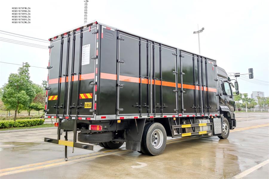 外板采用1mm厚冷軋板有一次性成型的百葉窗,內(nèi)飾為導(dǎo)電性能良好的鋁板有透氣孔,內(nèi)襯為矩形管骨架牢靠穩(wěn)定,內(nèi)部填充為透氣防潮阻燃的擠塑板,廂體外部上下鋁合金型材包邊,底板和車廂前下部鋪橡膠皮,后門雙開,右側(cè)選裝側(cè)開門,內(nèi)部有固定貨物的臥環(huán),車輛外部有靜電帶,滅火器,防火罩,車廂內(nèi)安裝煙霧報(bào)警器和門防盜報(bào)警器,嚴(yán)格按照國家危險(xiǎn)品相關(guān)法規(guī)張貼危險(xiǎn)品標(biāo)識(shí)和反光標(biāo)志等。