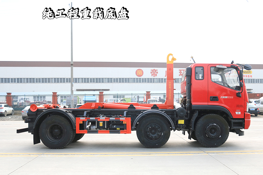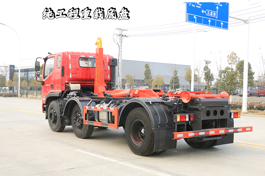 專用底盤:工程車底盤,承載能力強,掛上移動垃圾站總重為26.85噸;空調、助力轉向;國六發動機,濰柴220馬力,動力強勁,經濟環保;