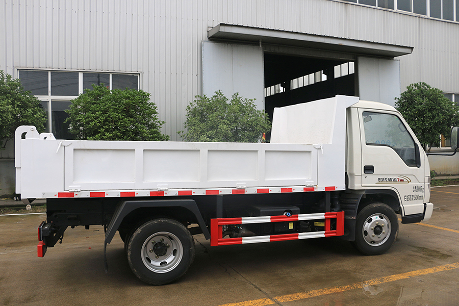自卸式垃圾車是指裝有一套液壓系統,能將車廂傾斜到一定角度,可自行倒出垃圾的一類車輛。