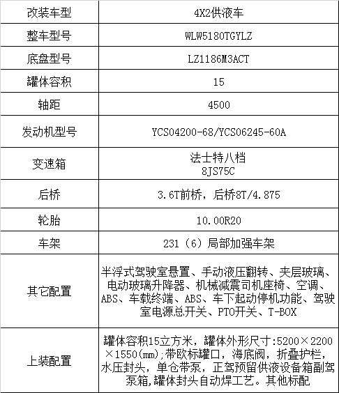 ①底盤:柳汽乘龍供液車(4*2)的發動機是大馬力發動機