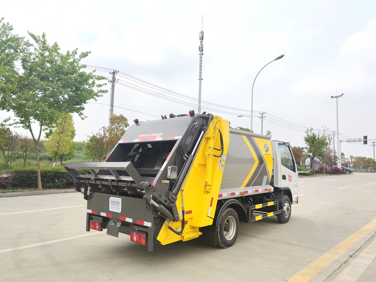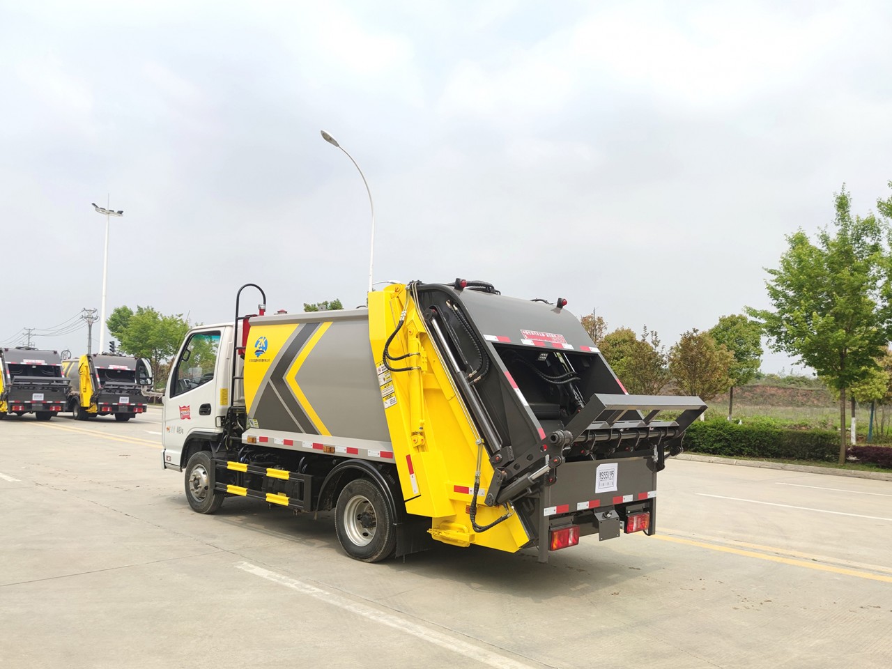 壓縮式垃圾車由密封式垃圾廂、液壓系統、操作系統組成。整車為全密封型,自行壓縮、自行傾倒、壓縮過程中的污水全部進入污水廂,較為徹底的解決了垃圾運輸過程中的二次污染的問題,避免了給人們帶來不便,關鍵部件采用進口部件,具有壓力大、密封性好、操作方便、安全等優點。 可選配后掛桶翻轉機構或垃圾斗翻轉機構。