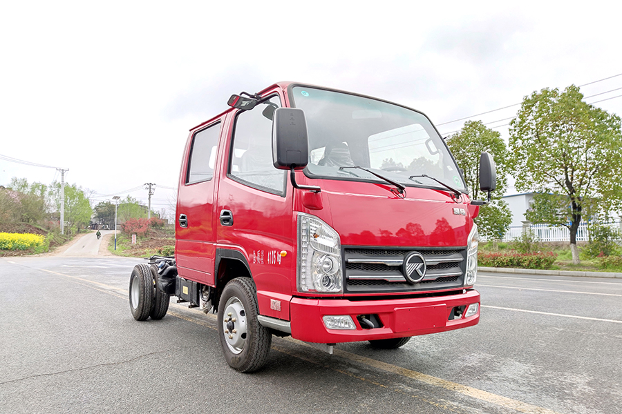 凱馬雙排座救險車專用底盤,2800軸距,底盤型號KMC1040A26S5,新款1580MM雙排消防紅色駕駛室(載員2+3),云內102馬力國五排放發動機,5檔變速箱,160MM直通加寬大梁,6.00-15尼龍胎,1043后橋,油剎,ABS,原廠空調