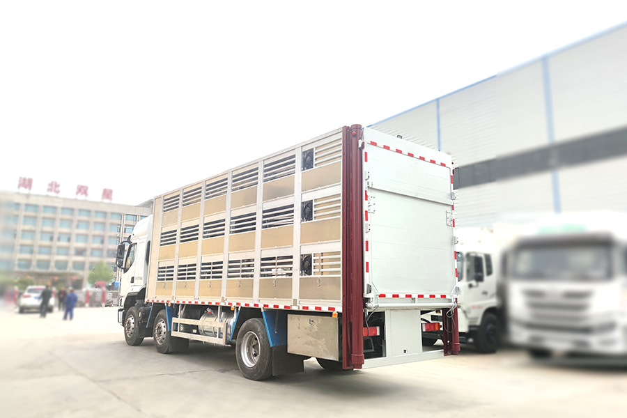 全鋁車身,三層,混合隔倉(cāng),可開(kāi)合側(cè)窗,高轉(zhuǎn)速防水通風(fēng)排氣扇,機(jī)組,噴淋,監(jiān)控,垂直升降尾板,空氣過(guò)濾,裝豬數(shù)量達(dá)到850頭/7公斤