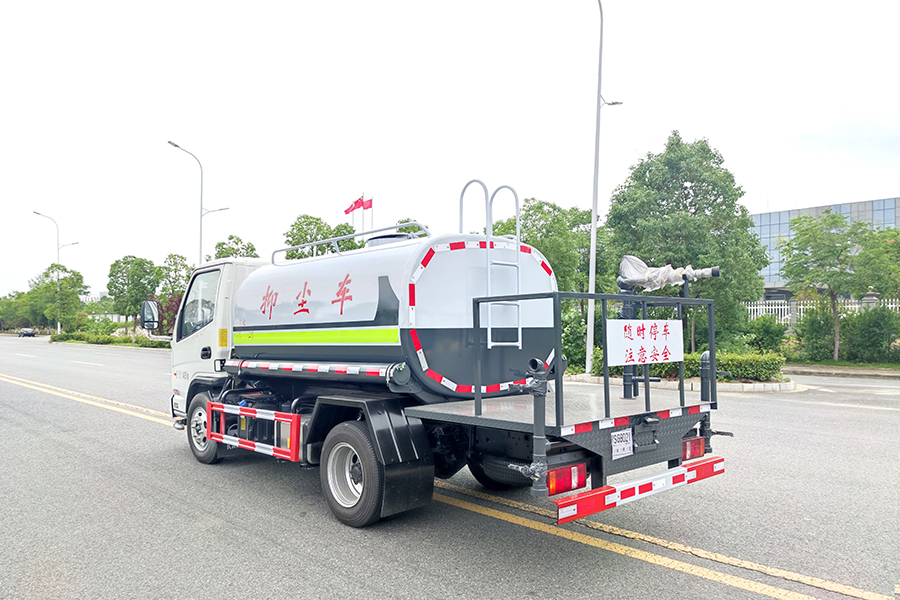 該車主要裝置是水箱和噴霧裝置,用于降低空氣中的灰塵,霧霾等現象,圓形罐體,尺寸2600×1700×1250,公告有效容積3.7方,介質為抑塵劑,選裝后噴霧機組,大工作平臺。