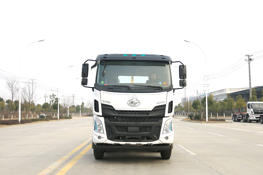 H5駕駛室,DC7J120T,Ф430離合,。282(8+4)雙層車架,250L鋁合金油箱,11.00R20,機械全浮駕駛室懸置、手動液壓翻轉、機械減振司機座椅、電動玻璃升降、遙控中控鎖、空調、車載終端、外部遮陽罩、多態開關、右轉提示功能、超速報警功能、ABS 、電控硅油風扇、駕駛室電源總開關、車下起動停機功能、PTO開關。