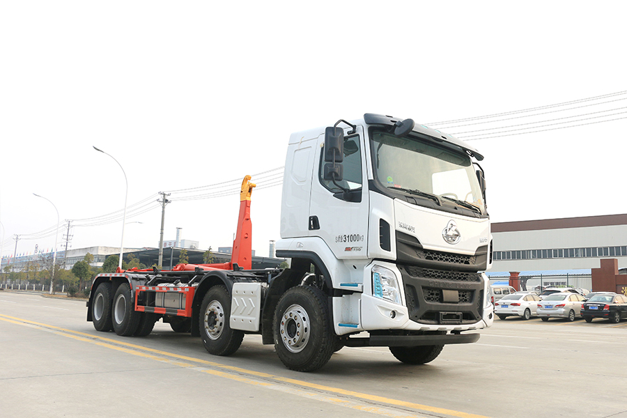 車廂可卸載式垃圾車,又稱勾臂式垃圾車、拉臂式垃圾車。該車廣泛適用與城市街道學校垃圾處理,可一車配備多個斗,各個垃圾點放置多個。