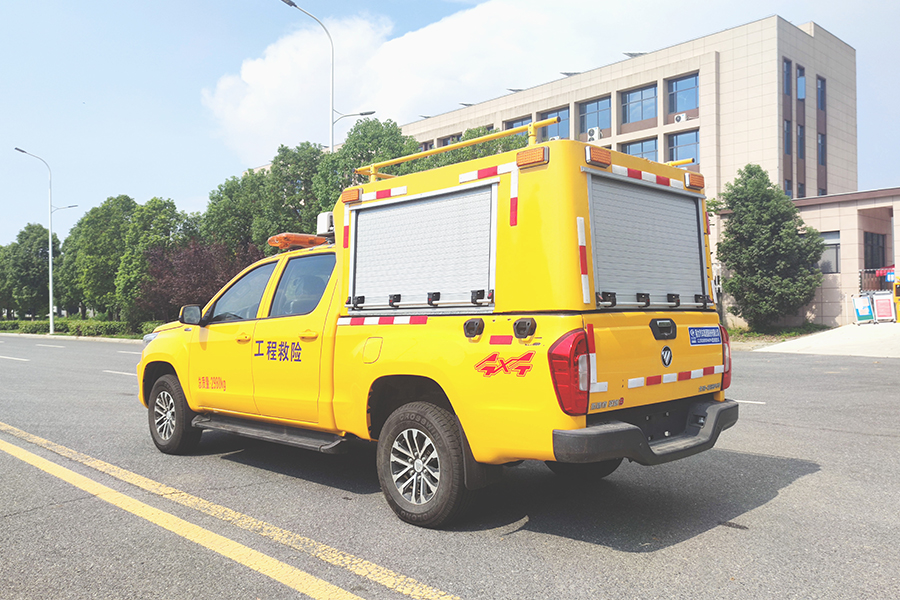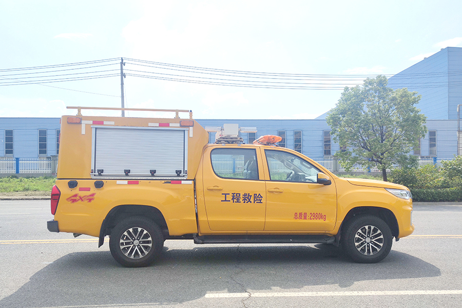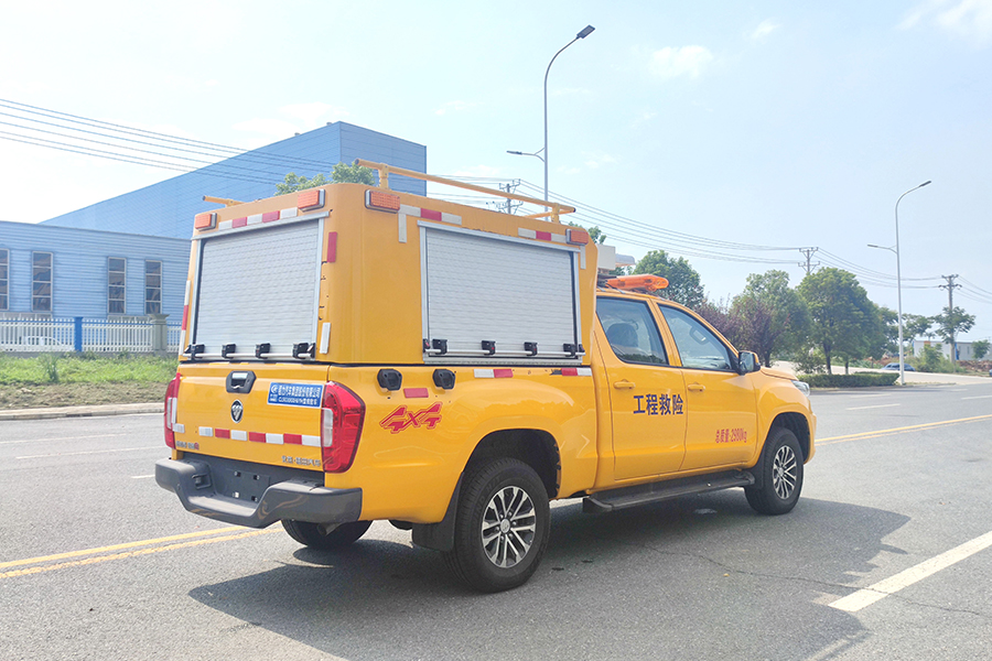 福田四驅(qū)皮卡工程應(yīng)急搶險救險車,具有高承載性,功能實(shí)用性和耐用性,具備快速的應(yīng)急響應(yīng)能力,該特種車是在福田雙排皮卡上進(jìn)行改造,加長封閉式貨箱有利于裝載存放更多的消防工具,車頂部安裝了工程警燈,車身采用醒目的工程黃,并貼有“工程救險車”的大字。