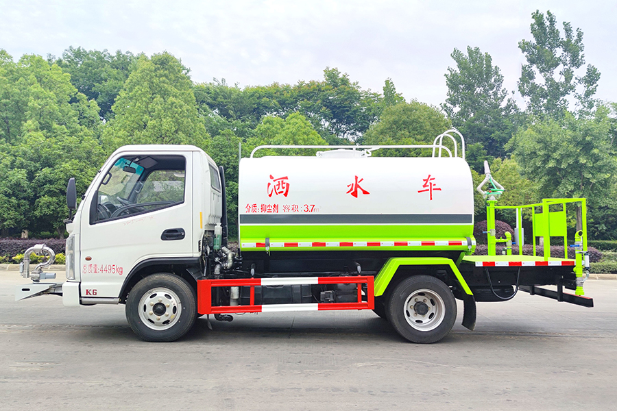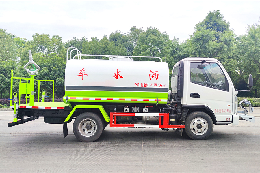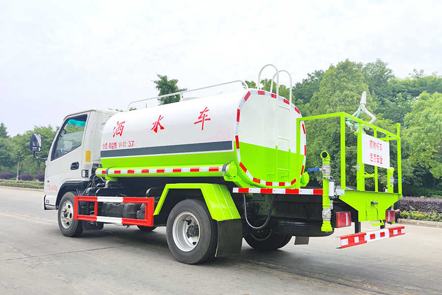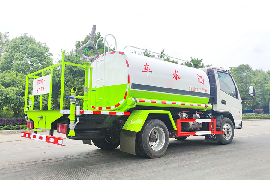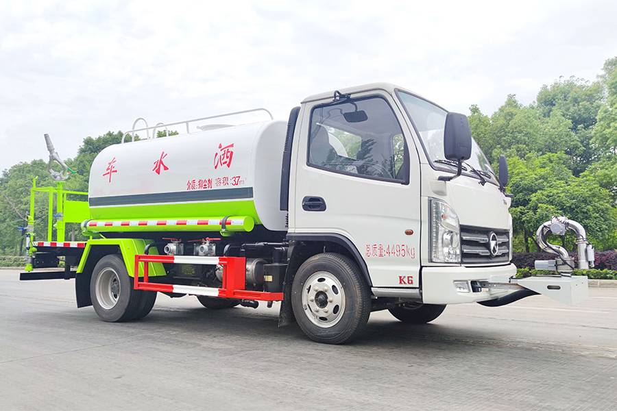 凱馬藍(lán)牌灑水車,標(biāo)配前沖、后灑、側(cè)噴、后置式工作平臺、平臺上有高壓水炮(可360°旋轉(zhuǎn),可調(diào)成柱狀最大射程35米,也可調(diào)成霧狀最大射程15米,可調(diào)成:直沖狀、大雨、中雨、小雨、毛毛雨),配備優(yōu)質(zhì)大功率專用灑水泵,取力器,雜物過濾網(wǎng),國標(biāo)通用65型消防接口(可通過消防栓加水)、1套自流球閥系統(tǒng)(可自吸自排,可從河里或池塘抽水到罐體,最大吸程7米),2根引水鋼絲膠管。水泵、取力器、球閥、濾網(wǎng)均為國家標(biāo)準(zhǔn)產(chǎn)品,主管道加粗,法蘭墊、法蘭盤加厚,萬向前沖,大通徑球閥,具有性能優(yōu)良,工作可靠、效率高、流量大、維修方便等特點。