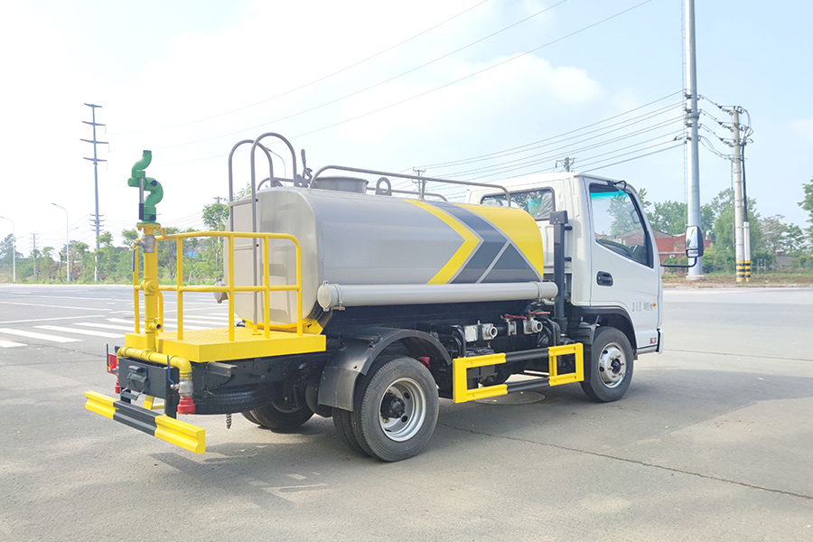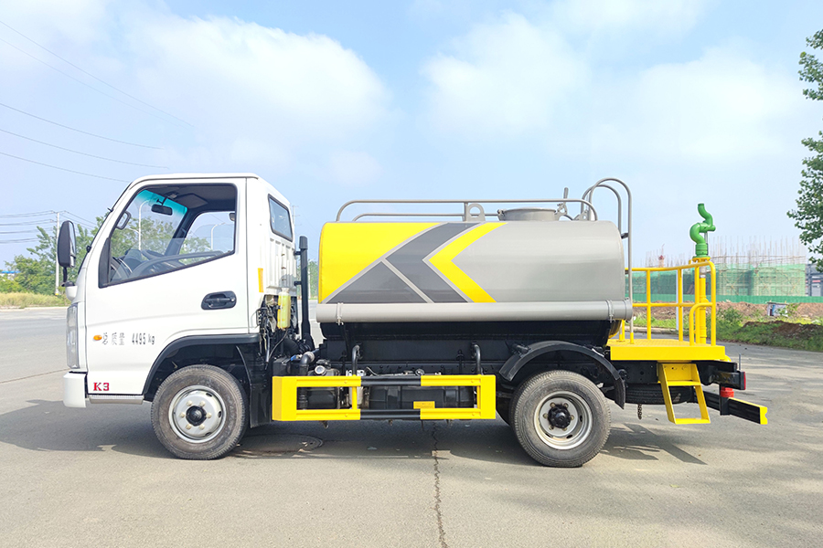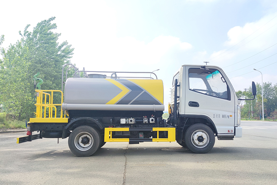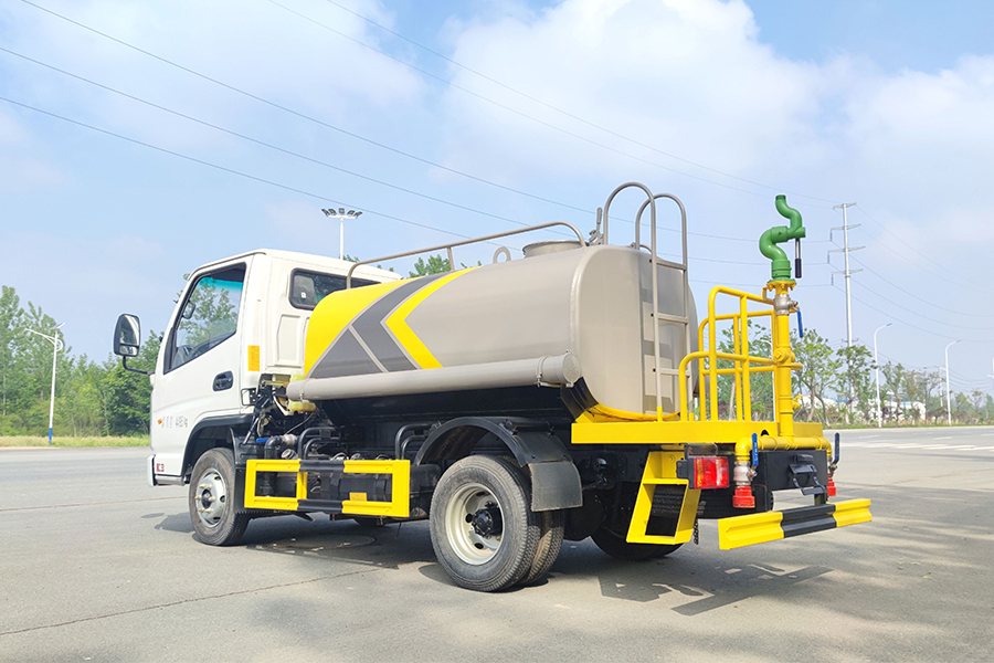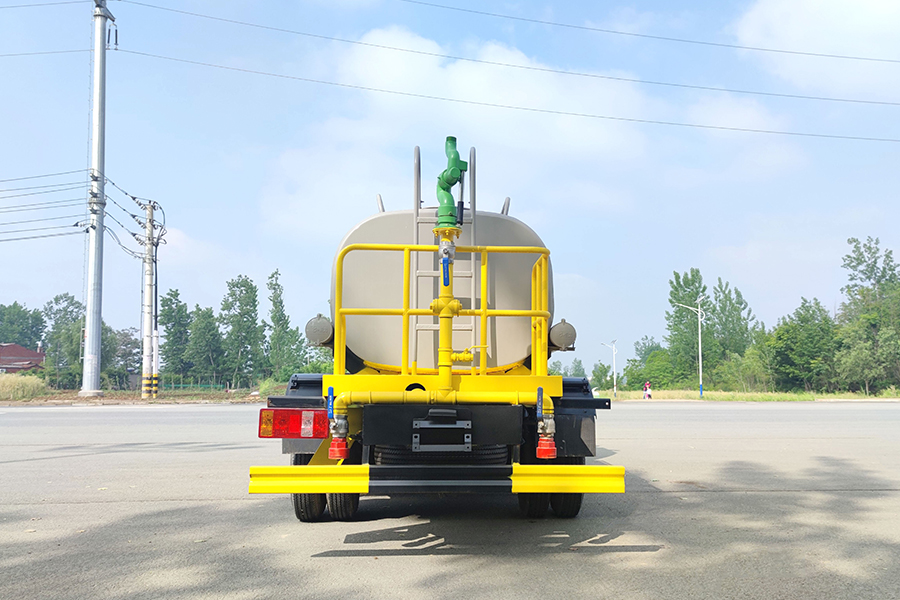 ★上裝配置:罐體用4MM碳鋼板制作,罐內隔板具有防波作用,以減低汽車行駛時罐體液體的沖擊。整車帶一個專用灑水泵(垂直最大吸程6米),灑水寬度14米,射程28米。多功能灑水車配備2個前沖(噴)(能將路面泥巴、塵土、垃圾沖干凈);2個后灑(能均勻地將水灑在路面,一次灑水寬度14米)、2個側噴(花灑)(能均勻地將路旁綠化帶澆灌)、帶1個后工作平臺,平臺上安裝1個綠化灑水高炮(灑水炮可全方位旋轉,可連續調成直沖狀、大雨、小雨、毛毛雨,霧狀可調節沖洗高大樹木),引水時間<5min,流量90m3/h。帶1個消防接頭,帶1個自流閥,1個過濾裝置、人性化爬梯及側防護欄,安裝灑水音樂喇叭。