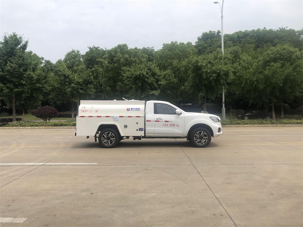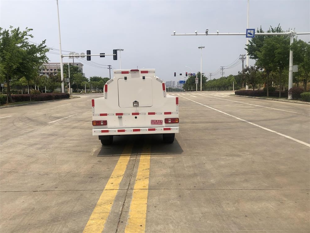 總質量:3345KG,額定載:1100KG,整備質量:2115KG;罐體容積 1.2m3,罐體采用優質碳鋼(3mm)焊接制作,封頭自動焊,拼板自動焊,罐內裝有防浪板,配備 40/50 灑水泵,配后灑陀。65三通球閥、65兩通球閥、三通濾網、消防水口、吸水口各 1 個。罐體左右兩側優質碳鋼板裙邊,罐體尾部仿罐體外形工具箱一個,工具箱底部花紋鋁板