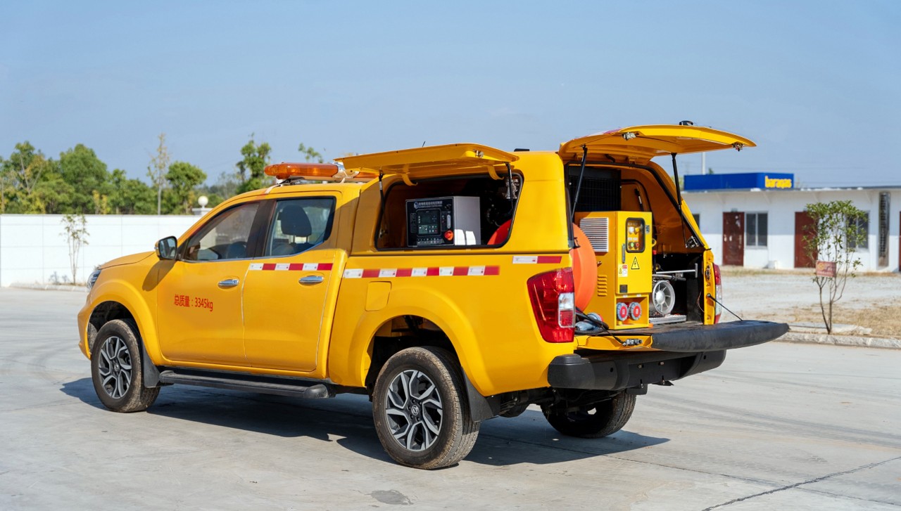 車輛配套獨立的柴油發電機組,主用輸出額定功率≥30KW;柴油機排放滿足國三要求;機組油箱容積可滿足發電機組持續8-10小時。采用智能控制系統,集中控制,帶機組控制屏,中文界面,可顯示水溫、油壓、速度、電流、電壓等,具有自動障礙保護功能,選用優質電氣元件,性能穩定,箱體尾部配置接地防護裝置,安全可靠。